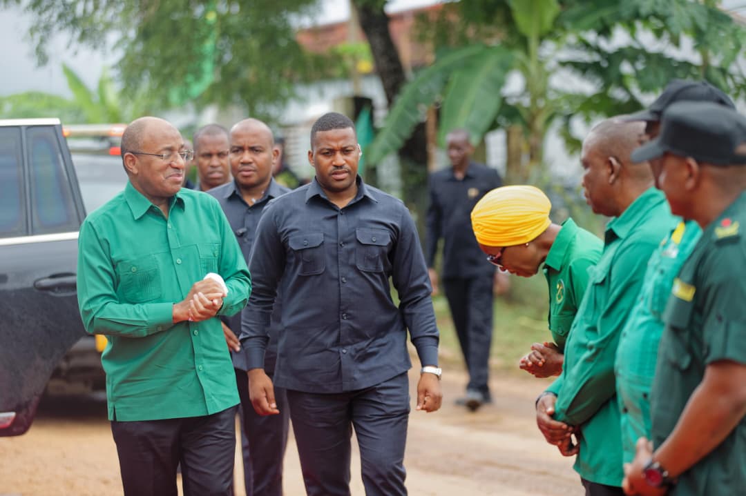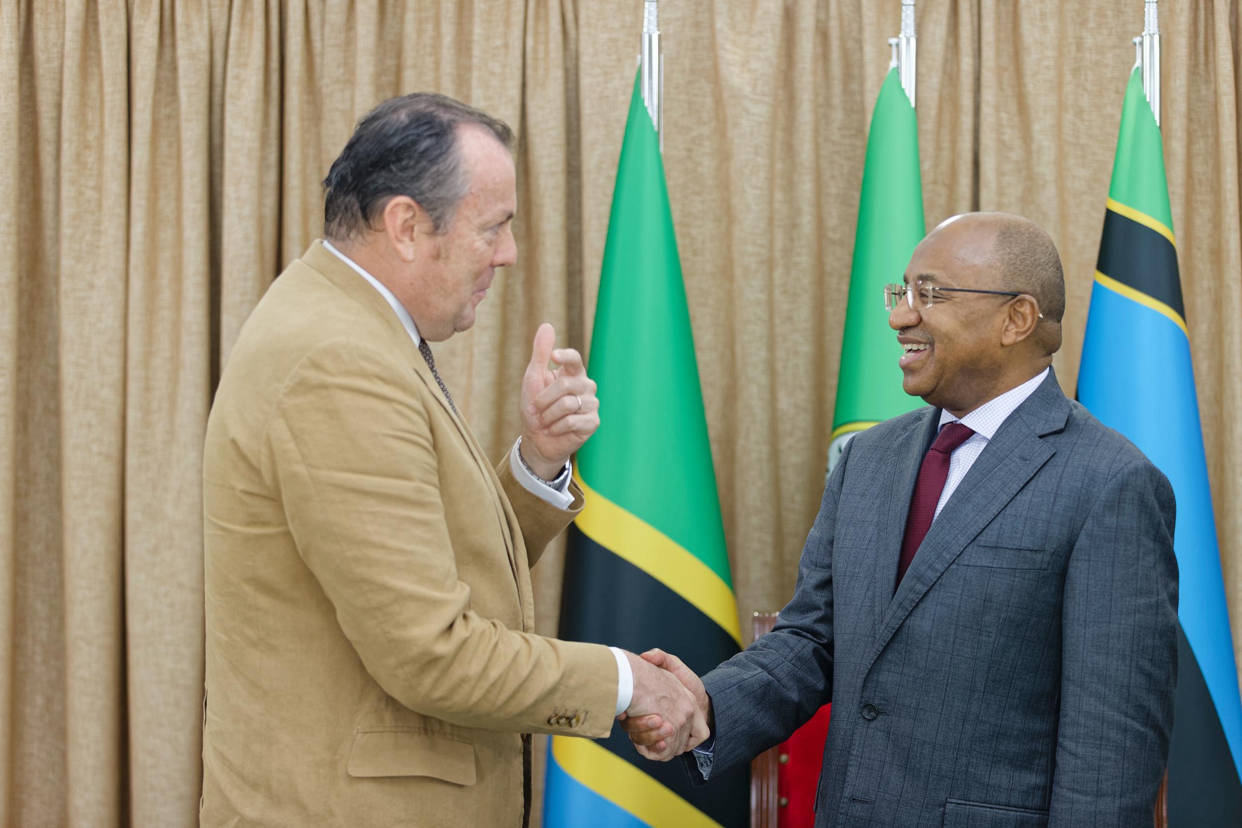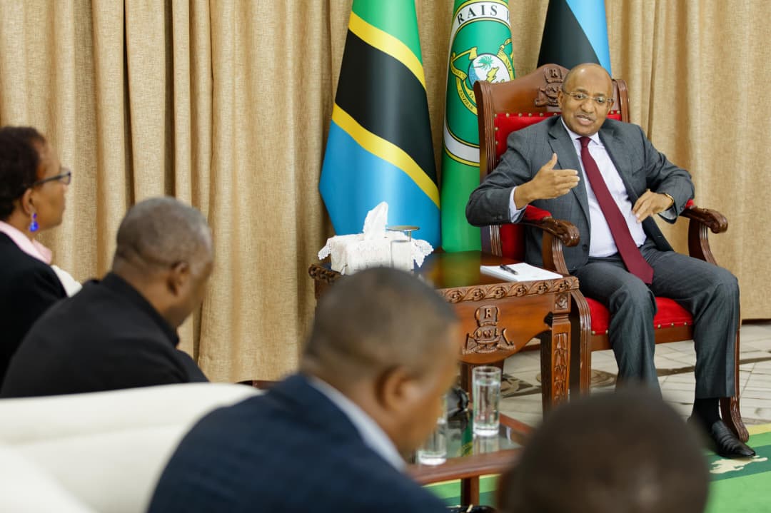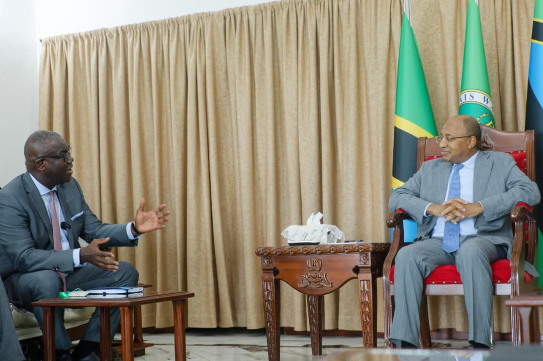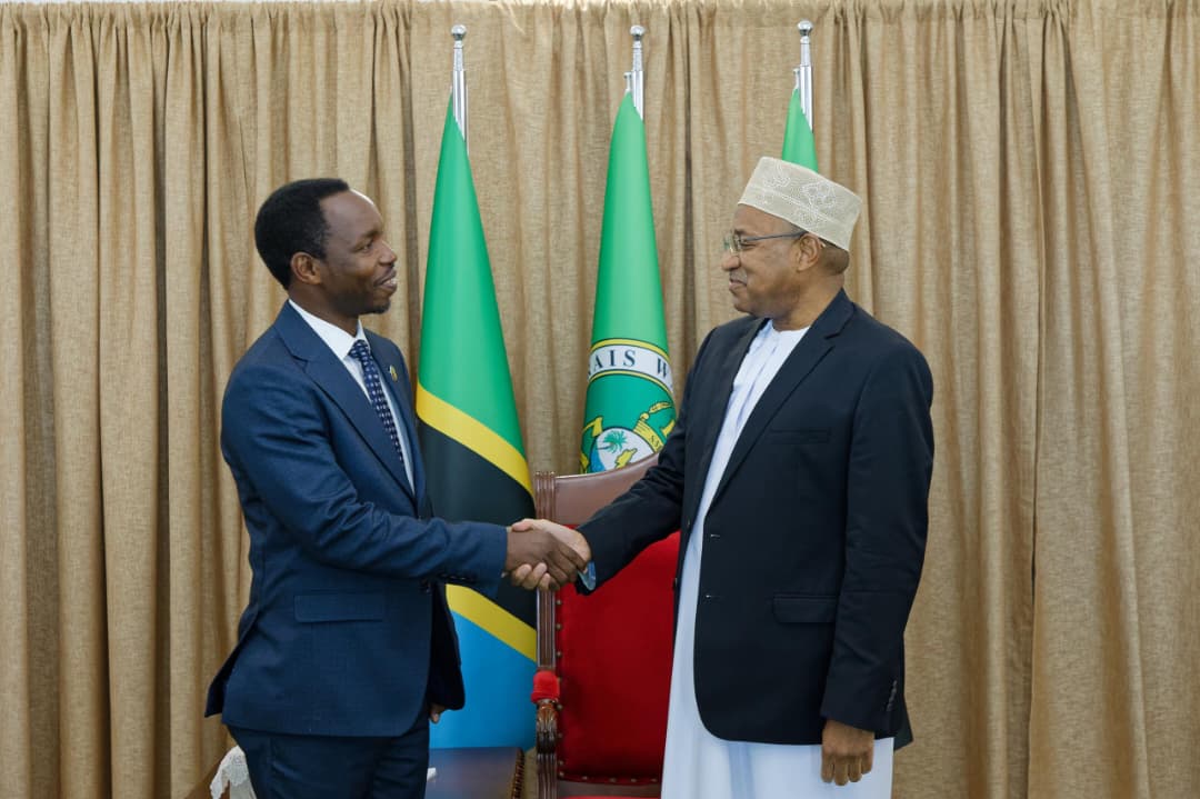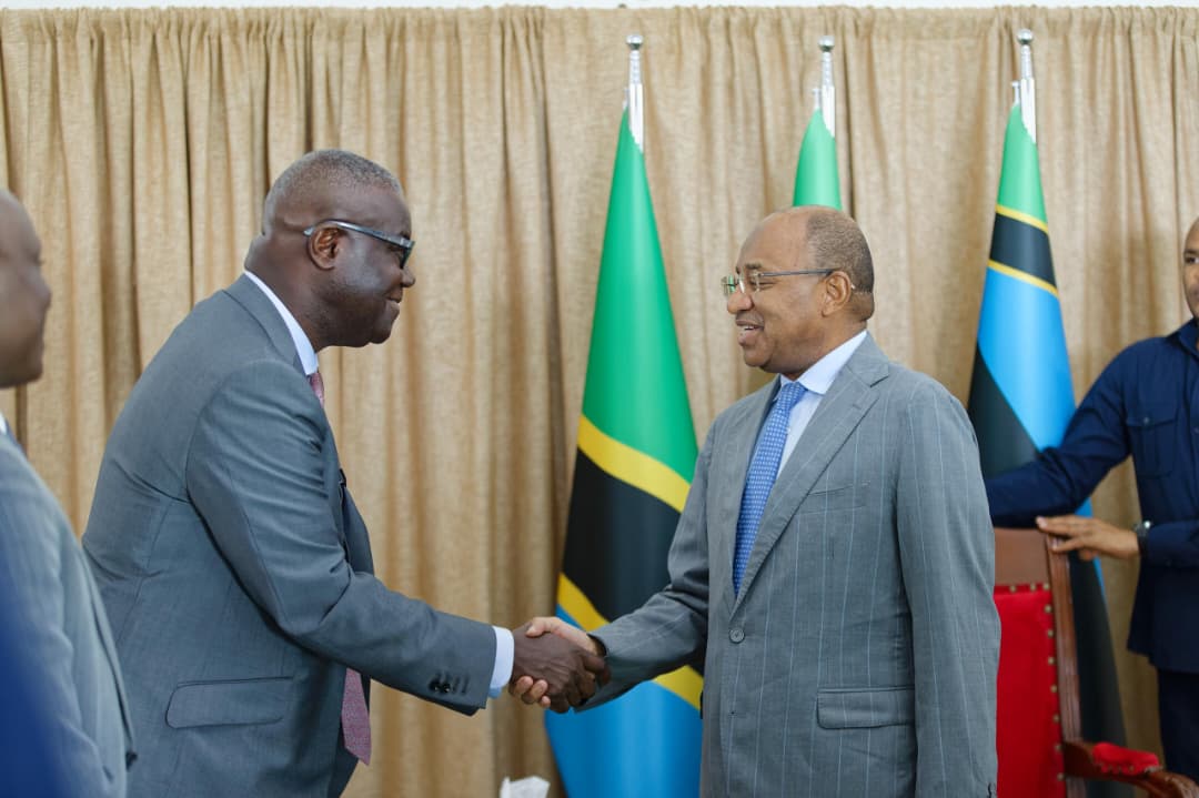 Rais wa Zanzibar na Mwenyekiti wa Baraza la Mapinduzi, Mhe. Dkt. Hussein Ali Mwinyi, akisalimiana na Afisa Mtendaji Mkuu wa Benki ya Ecobank, Ndugu Charles Asiedu kutoka katika Kitengo cha Wateja wa Biashara na Uwekezaji kutoka Makao Makuu ya Benki hiyo nchini Togo, aliyefuatana na Afisa Mtendaji Mkuu wa Ecobank Tanzania,leo tarehe 15 Aprili 2026, Ikulu Zanzibar.