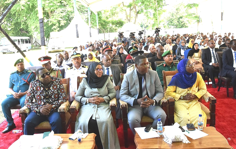BAADHI ya Viongozi wa Serikali na Vyama vya Siasa wakimsikiliza Rais wa Zanzibar na Mwenyekiti wa Baraza la Mapinduzi Mhe.Dk.Hussein Ali Mwinyi.(hayupo pichani) wakati wa hafla ya kukabidhi zawadi za Komputa (Laptop) alizowaahidi Wanafunzi wa Kidatu cha Sita na cha Nne waliofanya vizuri Mitihani yao ya Taifa mwaka 2022 na kupata Daraja la Kwanza, hafla hiyo iliyofanyika katika viwanja vya Ikulu Jijini Zanzibar.
