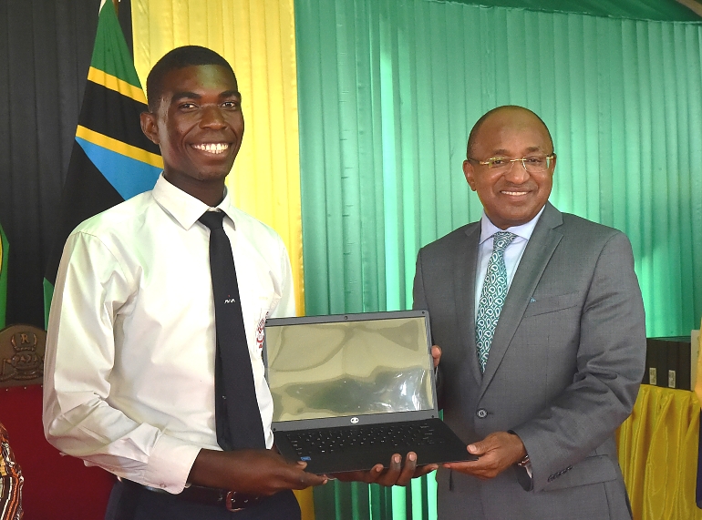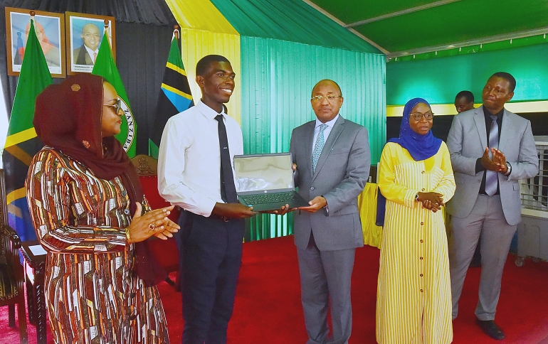 Wanafunzi wa Kidatu cha nne na Sita kukabidhiwa zawadi zao za Komputa (Laptop) na Rais wa Zanzibar Dk. Hussein Mwinyi.