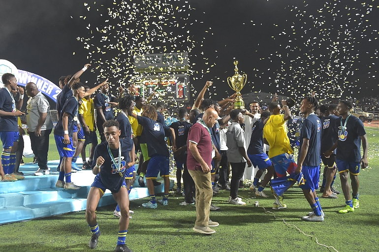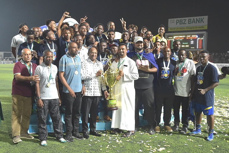 WACHEZAJI wa Timu ya Mlandege wakishangilia Ubingwa wao wa Kombe la Mapinduzi Cup 2023. Baada ya kuifunga Timu ya Singida Big Stars kwa mabao 2-1