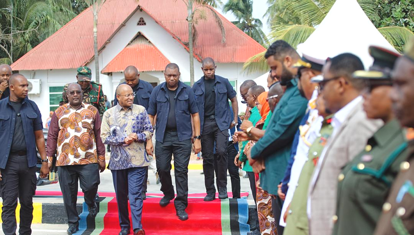 Rais wa Zanzibar na Mwenyekiti wa Baraza la Mapinduzi, Dkt. Hussein Ali Mwinyi, akiwasili eneo la Mwanakwerekwe katika hafla ya ufunguzi wa Barabara ya Juu (Flyover) ya Dkt. Hussein Ali Mwinyi – Mwana