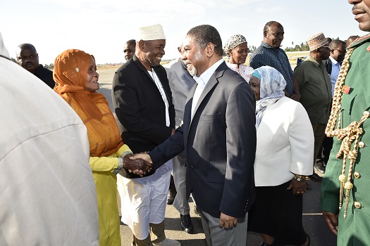 Katika uwanja wa ndege wa Kimataifa wa Abeid Amani Karume viongozi mbali mbali wa Serikali, vyama vya siasa pamoja na wakuu wa vikosi vya ulinzi na usalama wa Serikali ya Jamhuri ya Muungano wa Tanzania na Serikali ya Mapinduzi ya Zanzibar wakiongozwa na Makamo wa Pili wa Rais wa Zanzibar Balozi Seif Ali Idd walimpokea Rais Dk. Shein.