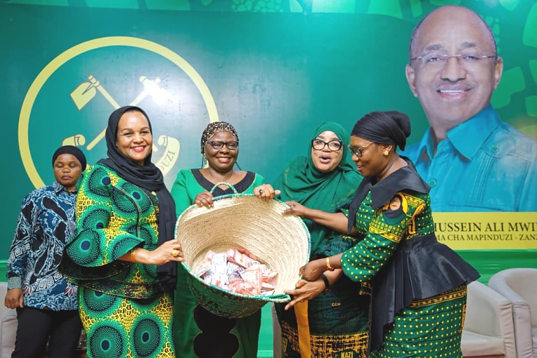 Mama Mariam Mwinyi amewapongeza Umoja wa Wanawake Tanzania (UWT) kwa kumuunga mkono Dkt. Mwinyi kwa kumchangia Shilingi Milioni 35 kwa ajili ya kuchukua fomu kesho katika Ofisi za Tume ya Uchaguzi Zan