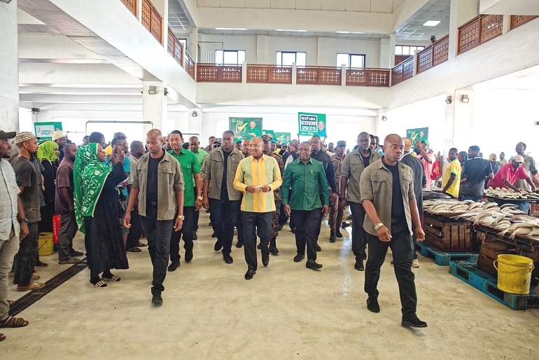 Mgombea wa nafasi ya Rais wa Zanzibar kupitia Chama Cha Mapinduzi (CCM), ambaye pia ni Rais wa Zanzibar na Mwenyekiti wa Baraza la Mapinduzi, Mhe. Dkt. Hussein Ali Mwinyi, akiwasili katika Soko la Kibanda Maiti, Mkoa wa Mjini Magharibi Dk. Mwinyi amesema tayari michoro ya Soko la Kisasa la Kibanda Maiti imekamilika na fedha za kutosha zimetengwa ili kuhakikisha ujenzi huo unakamilika kwa wakati.
