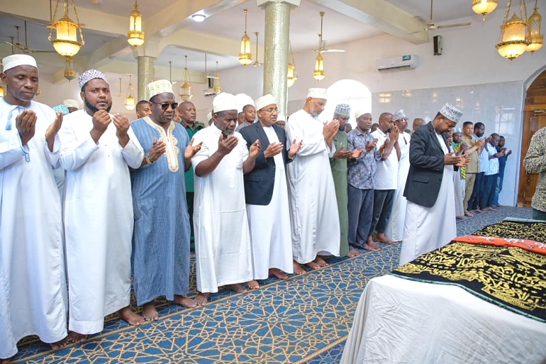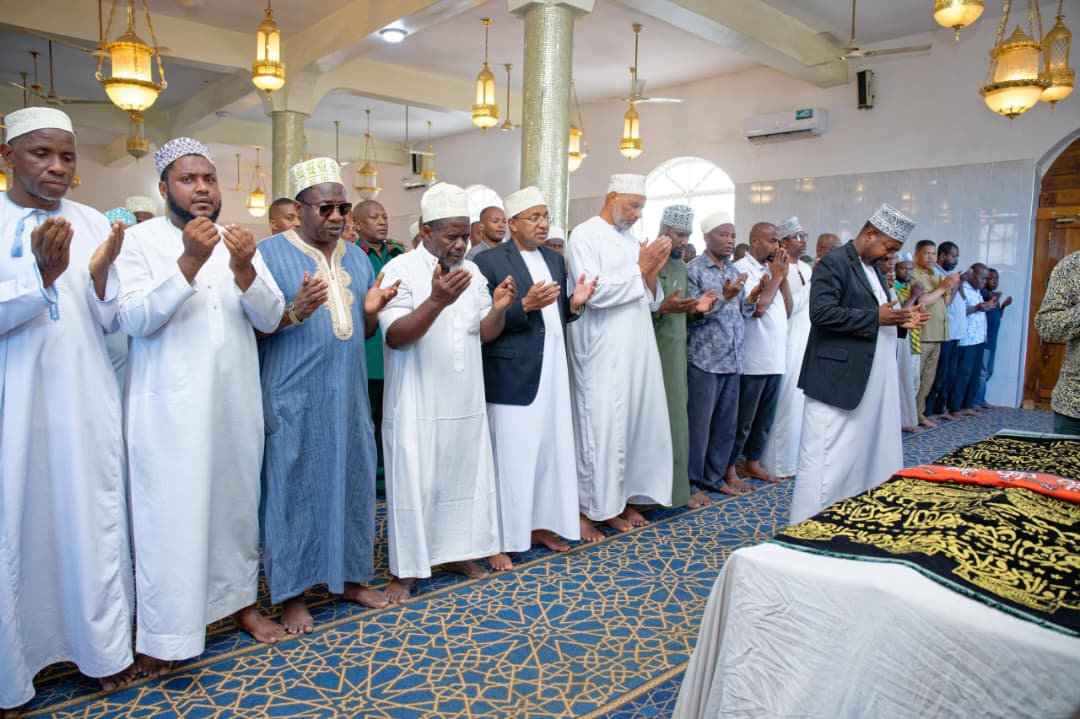 Mapema, Rais Dkt. Mwinyi alijumuika na Waumini wa Dini ya Kiislamu katika Sala ya Jeneza iliyosaliwa Masjid Twayyib uliopo Fuoni.