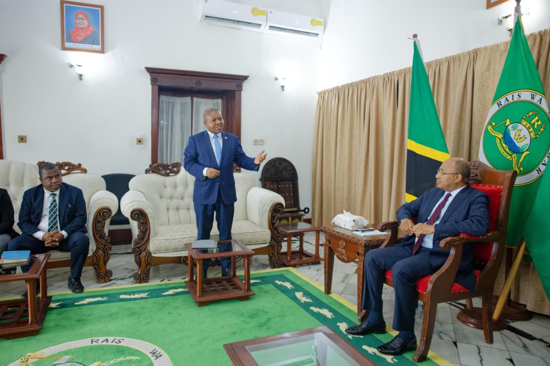 Rais wa Zanzibar na Mwenyekiti wa Baraza la Mapinduzi Dkt. Hussein Ali Mwinyi akizungumza na Kamishna Mkuu wa TRA, Ndg. Yussuf Juma Mwenda, pamoja na baadhi ya watendaji wakuu wa Mamlaka hiyo, waliofika Ikulu, Zanzibar, kwa lengo la kujadili masuala ya ufanisi wa ukusanyaji wa mapato na utoaji wa huduma leo tarehe 17/12 /2025.