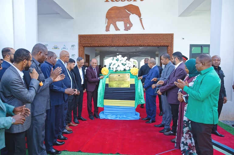 Rais wa Zanzibar na Mwenyekiti wa Baraza la Mapinduzi, Mhe. Dkt. Hussein Ali Mwinyi, akifungua kipazia kuashiria ufunguzi wa Hoteli ya TEMBO KIWENGWA ZANZIBAR RESORT iliyoko Kiwengwa Mkoa wa Kaskazini