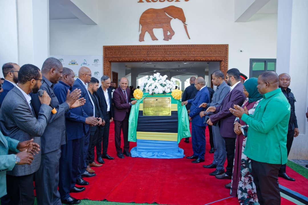 Rais wa Zanzibar na Mwenyekiti wa Baraza la Mapinduzi, Mhe. Dkt. Hussein Ali Mwinyi, akifungua kipazia kuashiria ufunguzi wa Hoteli ya TEMBO KIWENGWA ZANZIBAR RESORT iliyoko Kiwengwa Mkoa wa Kaskazini Unguja leo tarehe 19 Novemba, 2025