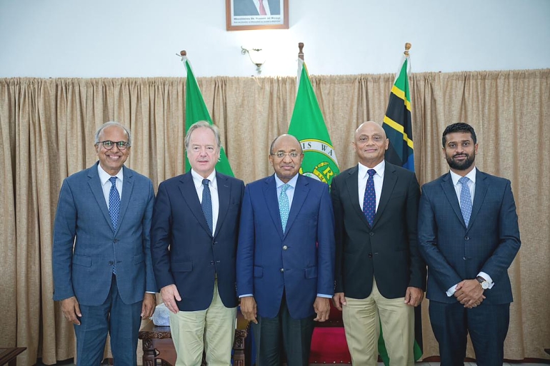Rais wa Zanzibar na Mwenyekiti wa Baraza la Mapinduzi, Mhe. Dkt. Hussein Ali Mwinyi, akiwa katika picha ya pamoja na Mwenyekiti wa Commonwealth Enterprise and Investment Council, Lord Swire, na ujumbe