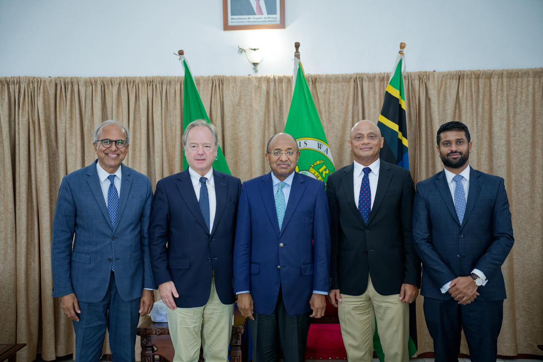 Rais wa Zanzibar na Mwenyekiti wa Baraza la Mapinduzi, Mhe. Dkt. Hussein Ali Mwinyi, akiwa katika picha ya pamoja na Mwenyekiti wa Commonwealth Enterprise and Investment Council, Lord Swire, na ujumbe wake waliofika Ikulu Mjini Zanzibar kwa mazungumzo.