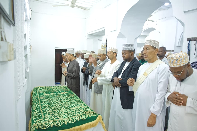Rais wa Zanzibar na Mwenyekiti wa Baraza la Mapinduzi, Mhe. Dkt. Hussein Ali Mwinyi, amejumuika na mamia ya wananchi katika kumswalia marehemu Sheikh Omar Bin Ali Qullaten, aliyefariki dunia jana akiw
