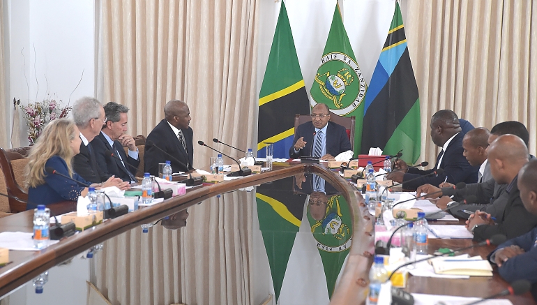 RAIS wa Zanzibar na Mwenyekiti wa Baraza la Mapinduzi Mhe.Dk.Hussein Ali Mwinyi akizungumza na Ujumbe wa Madaktari Bingwa kutoka Marekani na Ubelgiji wa Taasisi ya “The International Society for Gynecologic Endoscopy” ukiongozwa na Prof. Dr. Bruno J.Van Herendael, mazungumzo hayo yaliyofanyika katika ukumbi wa Ikulu Jijini Zanzibar 25-1-2023
